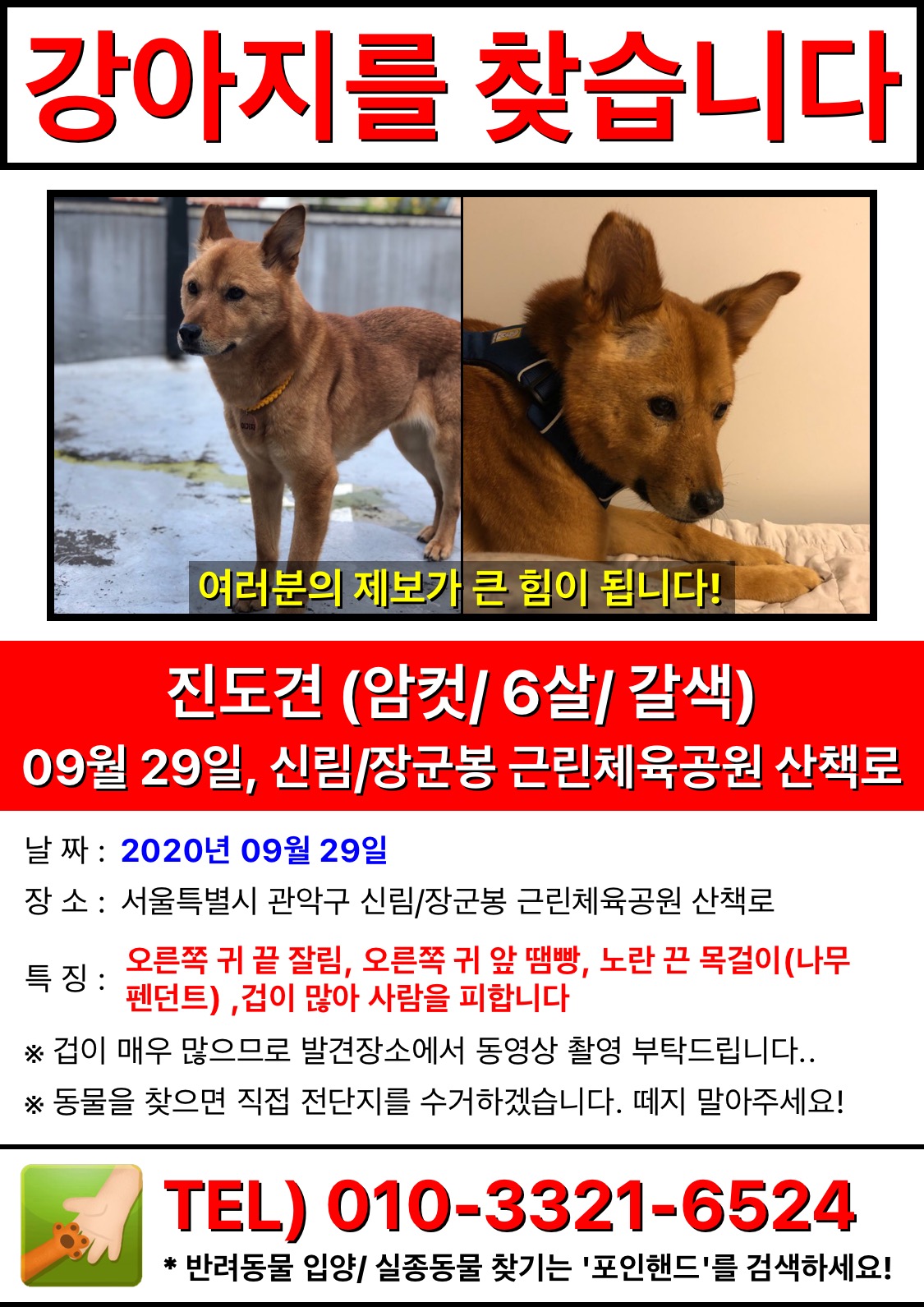 ½ÇÁ¾ ÈÄ ¹ß°ßÀ§Ä¡ : 9¿ù 29ÀÏ [½Å¸²µ¿ À屺ºÀ ±Ù¸°Ã¼À°°ø¿ø »êÃ¥·Î]¿¡¼­ ¿ÀÀü 9½Ã ¾ÆÀ̸¦ ¸¶Áö¸·À¸·Î ¹ß°ßÇß½À´Ï´Ù.